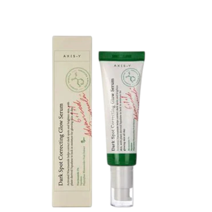 The AXIS-Y Dark Spot Correcting Glow Serum is a lightweight, brightening serum designed to visibly reduce dark spots and improve uneven skin tone. Powered by 5% Niacinamide and enhanced with plant-derived Squalane, this serum balances oil production, hydrates the skin deeply, and strengthens the skin barrier. Its botanical blend—featuring Sea Buckthorn, Papaya, Rice Bran, and Calendula—soothes irritation, promotes radiance, and supports a more even complexion.
